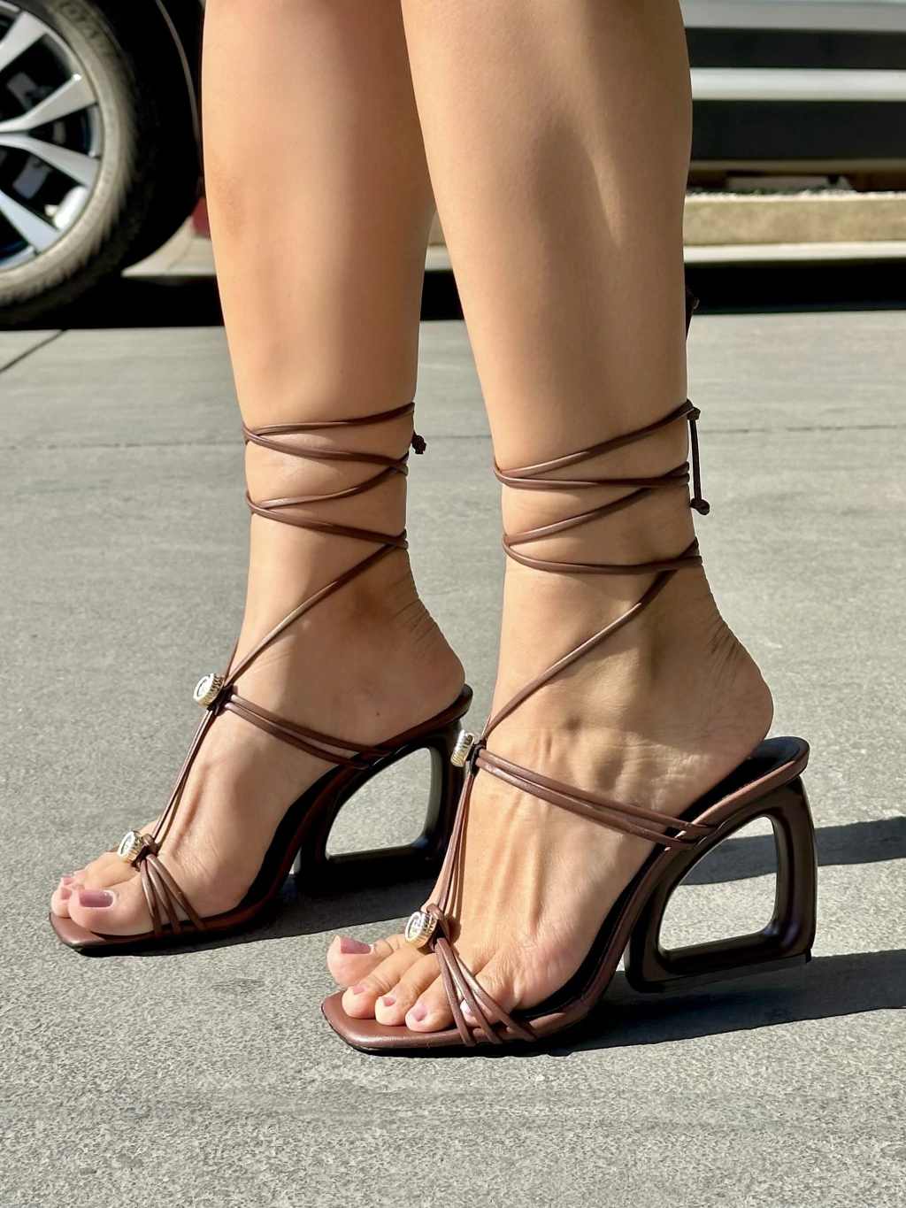 Sandália Salto Geométrico e Amarração: quem disse que conforto e estilo não podem andar de mãos dadas? Com um salto geométrico que parece obra de arte moderna, essa sandália é a escolha perfeita para quem quer arrasar e ainda dar um nó no tédio com a amarração super charmosa. Ideal para transformar qualquer look básico em um espetáculo fashion.