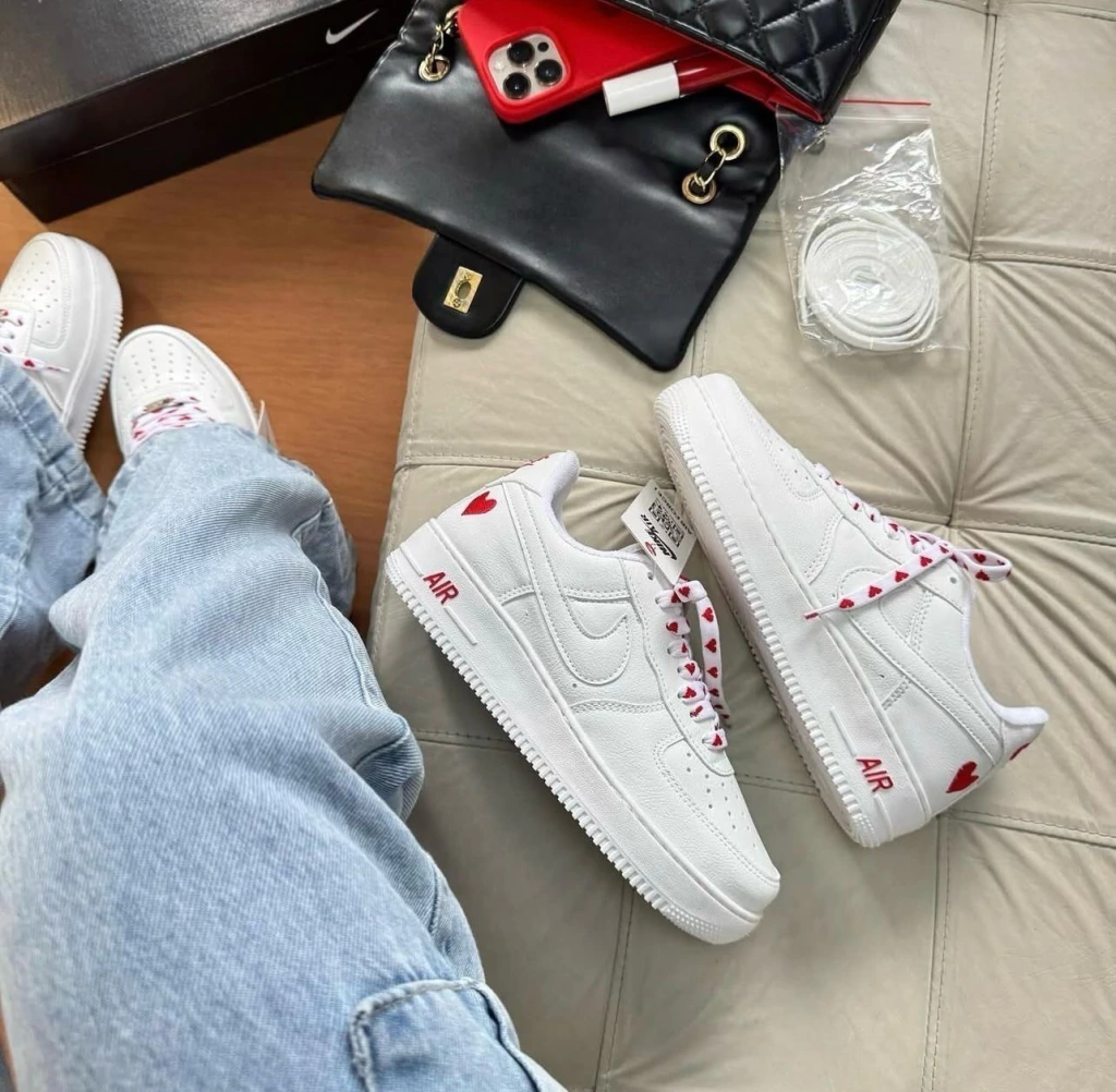 Descrição Geral O Tênis AF1 Branco Love ❤️ é a escolha perfeita para quem busca estilo e conforto em cada passo. Com uma linha premium, ele combina a sofisticação do branco com a delicadeza do nude, tornando-se um verdadeiro destaque no seu guarda-roupa.
