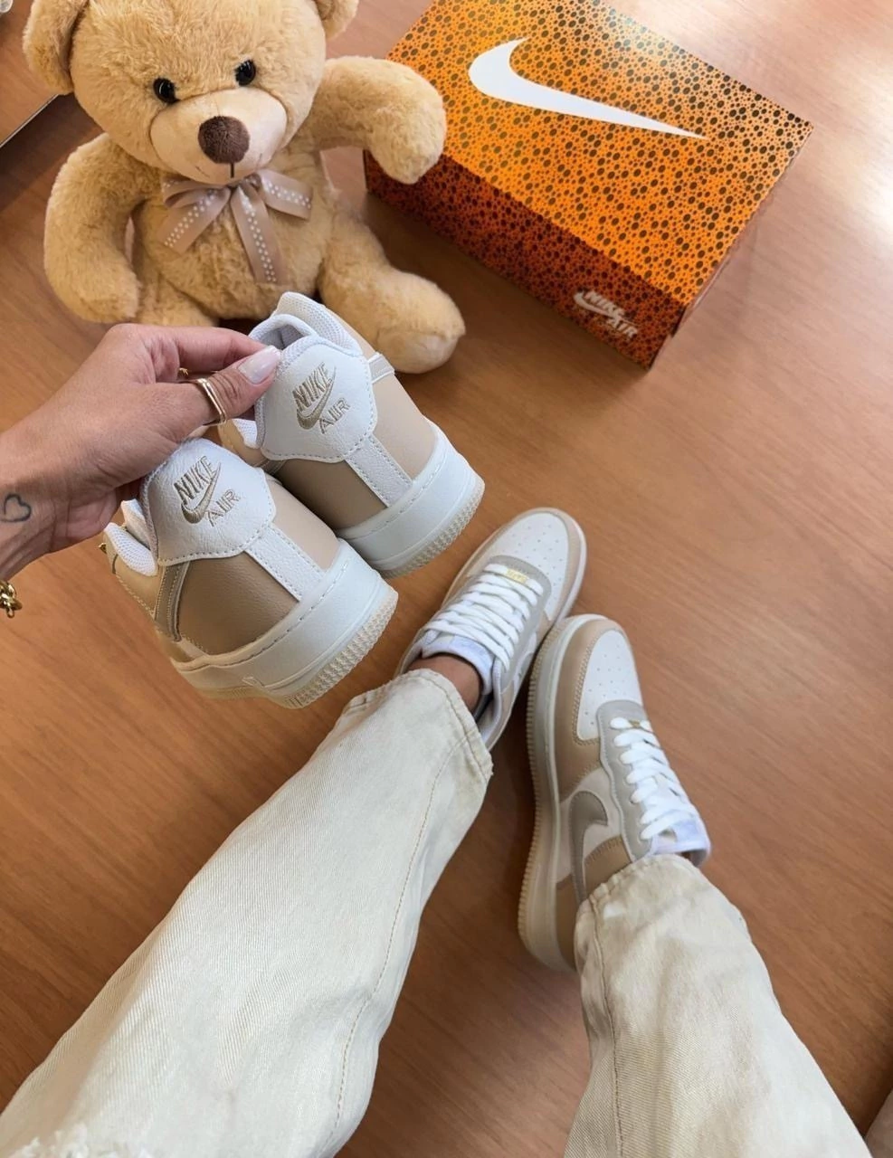 O Tênis AF1 Nude/Cinza chegou para revolucionar seu estilo com muito charme e versatilidade! Com dois cadarços para você trocar e combinar, ele é o parceiro ideal para quem ama variar no look sem perder o conforto.