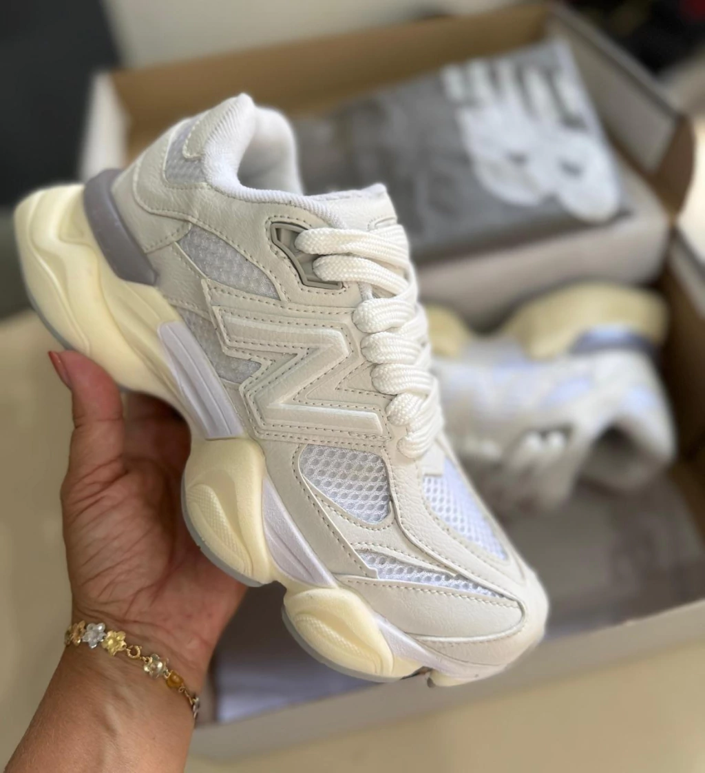 Conheça o Tênis NB Branco Nb9060 todo branco, o parceiro perfeito para quem quer estilo e conforto sem complicação! Com design impecável e aquele toque de elegância que só o branco traz, ele é ideal para qualquer ocasião – do passeio no parque ao café com os amigos.